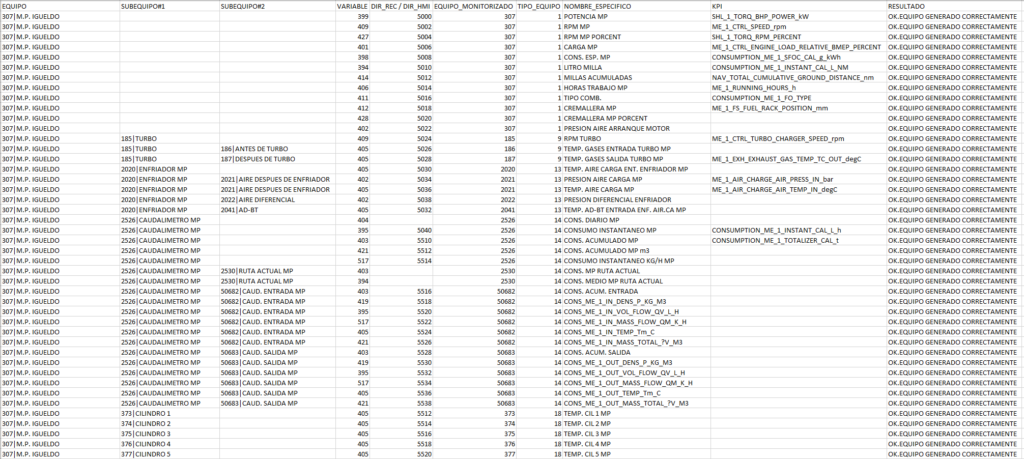 Una vez lo tenemos guardamos el csv en ese mismo formato y lo importamos. Verificamos que todo esta ok y exportamos el CFG.ini que pegaremos en el recolector para que empiece a mandar los valores a la nube.