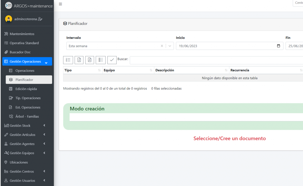 Por el contrario si no tenemos ninguna operación seleccionada estaremos creando una nueva operación: