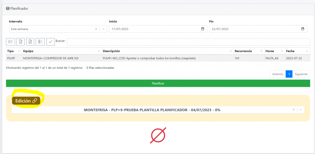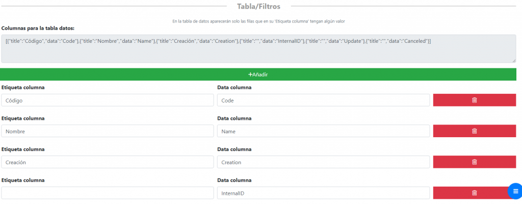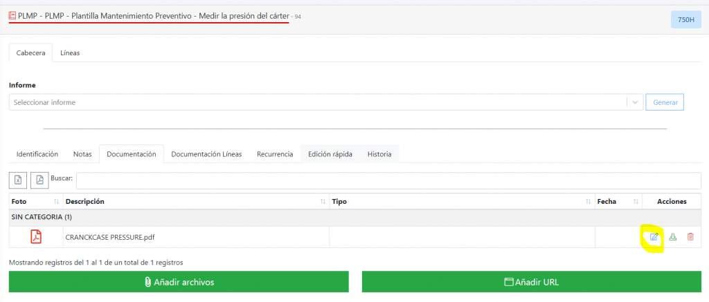 Si en la tabla superior tenemos alguna operación seleccionada estaremos editando dicha operación: