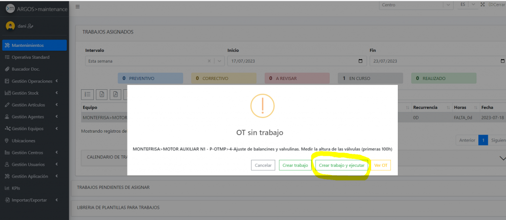 - Ejecutar operación. Está habilitado si tenemos en la tabla superior seleccionada alguna operación en estado En Revisión. Al pulsarlo nos solicitará la firma y desvinculará de este centro todos los usuarios de nivel 3(Técnico) y vinculará a este centro los agentes de este documento Crew List. Además modifica el estado de la operación a Realizado.