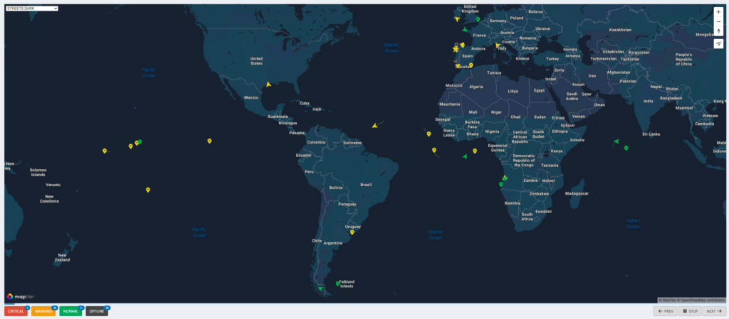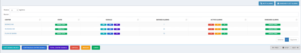 Esta pantalla puede variar en funcion a si hay alarmas activas nuevas. Si las hay, nos saldrán solo aquellos barcos con las alarmas nuevas y las alarmas que hay saltado nuevas saldrán parpadeando.