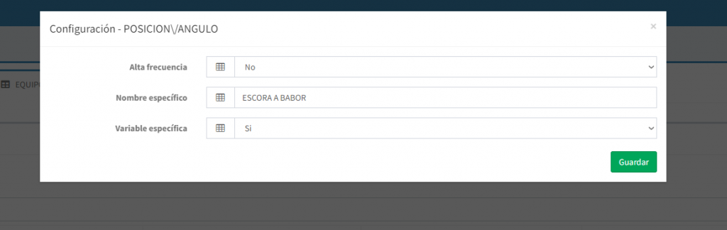 El botón editar nos permite cambiar el nombre específico de la variable-equipo que hemos seleccionado, si se trata de variable específica y si queremos recolectarla a alta frequencia