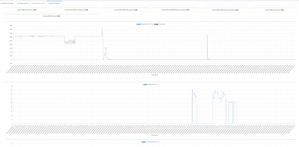 - En la pestaña gestión eléctrica se han añadido gráficas para el % de carga de los equipos y los KW y sus respectivas cajas arriba.