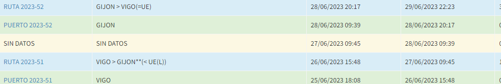 También se han añadido los eventos SIN DATOS, los cuales indican periodos en los cual el barco no ha enviado telemetrias y no se puede determinar si el barco se encuentra en ruta o no.