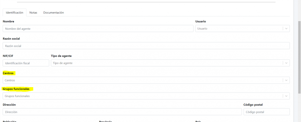 - Se crean 2 nuevos campos para poder relacionar a los agentes con Centros y Grupos Funcionales.