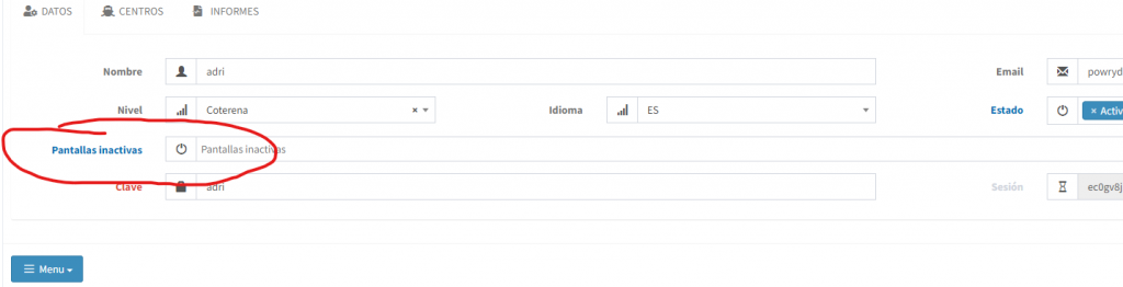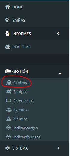 Configuración del centro: Para configurar la pantalla del centro debemos acceder a la opcion de menú Menú>Gestión>Centros.