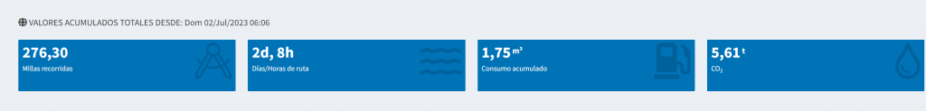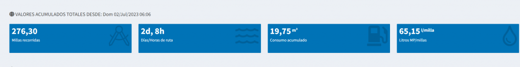 Bloque B: Este bloque es el encargado de mostrar los valores acumulados del centro. Entre ellos está por ejemplo las horas de ruta, millas acumuladas, consumo acumulado, co2 acumulado,… Dependiendo del tipo de centro tenemos los siguientes tipos: