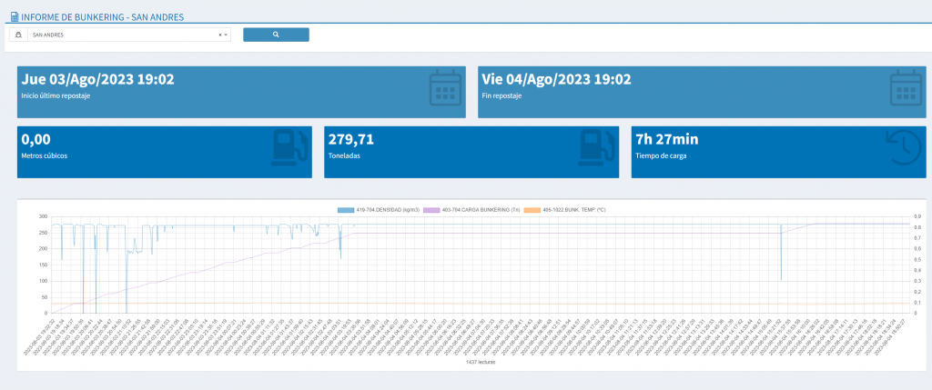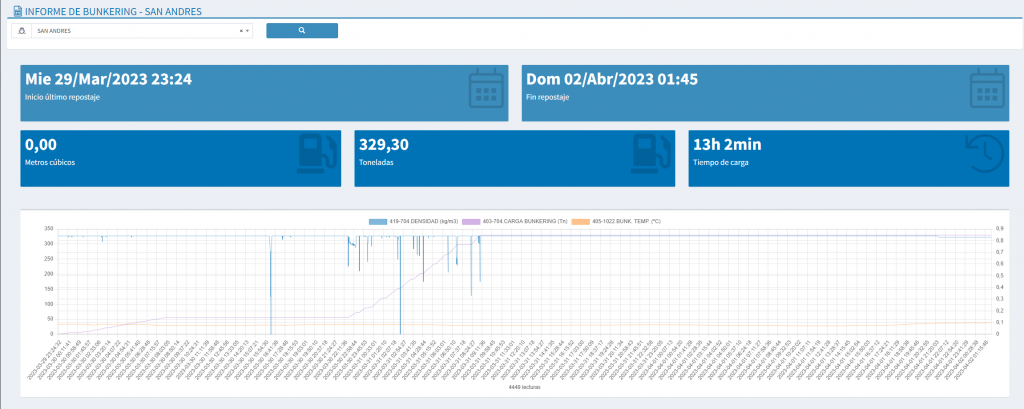 La gráfica se dispone debajo de los bloques principales. Tanto los bloques como la gráfica hablan del mismo evento de bunkering.